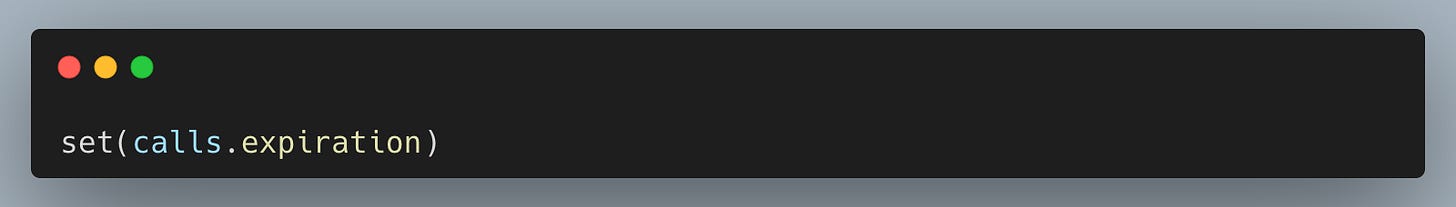 This check is a small but useful workflow habit: when beginners think âthe data is wrong,â itâs often just that the expiry set changed or a filter removed most rows. Seeing the available expirations keeps our later slices and plots grounded in what we actually pulled.
