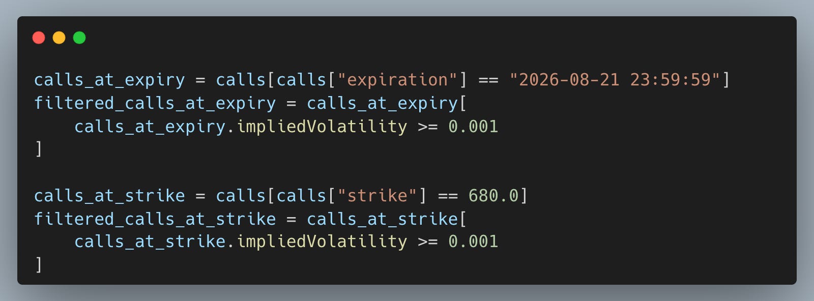 Youâll also make fewer beginner mistakes like comparing implied volatility across expirations without aligning strikes, or plotting noisy points without realizing you need filtering and reshaping first.