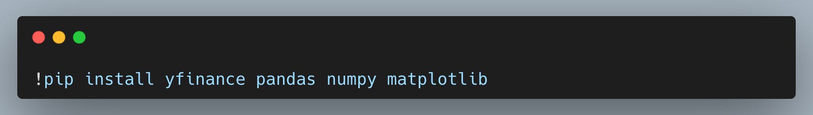 If you are running in a locked-down environment (some corporate JupyterHub setups), you may need to ask for yfinance to be whitelisted or installed via your platformâs package manager instead of pip.