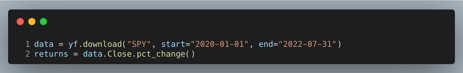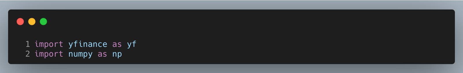 Keeping imports minimal mirrors production pipelines where dependencies are kept lean and predictable. yfinance is fine for tutorials; in production you would typically swap in a data vendor but keep the same numpy-based logic.