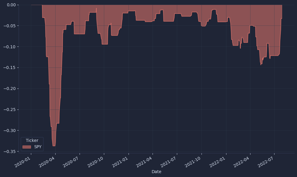 We use yfinance to download SPY price history for the study period, and numpy for vectorized operations used inside the drawdown calculations.